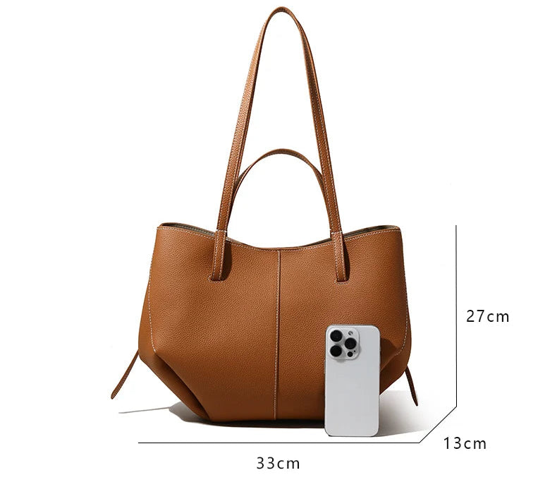 Alice är en stilren totebag i äkta koläder med en djup mörk chokladbrun nyans. Med måtten 33 x 13 x 27 cm rymmer den allt du behöver för vardagen. Bär den i handen eller över axeln – lika praktisk som elegant.