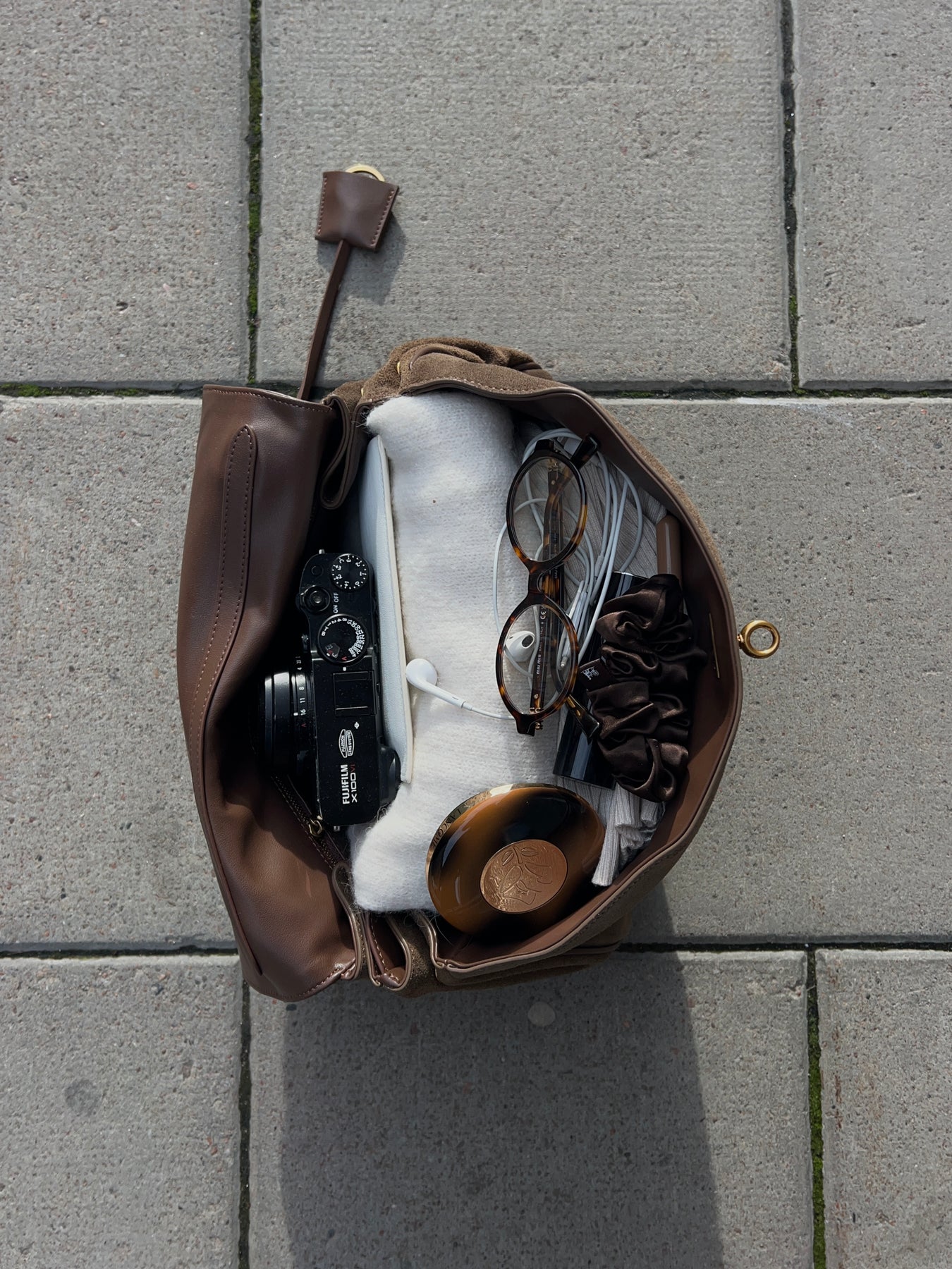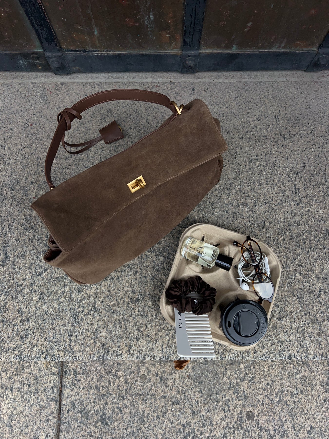 Upptäck Estelle, en väska med tidlös elegans och skandinavisk minimalism. En sofistikerad accessoar i mjuk mocka för alla tillfällen.
