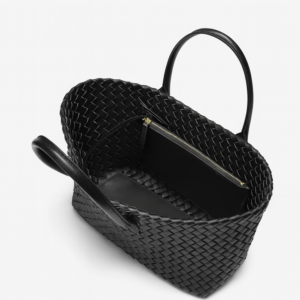 Tillverkad i äkta läder med en vacker, handflätad yta som ger väskan ett sofistikerat och modernt uttryck. Invändigt är väskan fodrad med slitstarkt PU-läder för ökad hållbarhet och enkel rengöring.